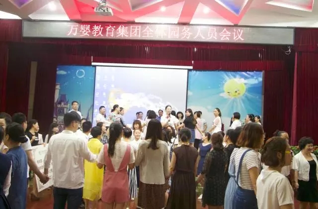 6月26日,万婴教育集团召开全体园务会议。万婴全体园务人员(含园长、教学园长/主任、保健医生、招生主任、后勤主任),集团总部人员,总共近两百名成员参加会议。集团总部教育中心、保育后勤中心、人力资源部、行政部、品牌营销部,分别就下阶段工作进行汇报和部署。