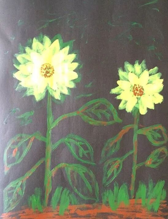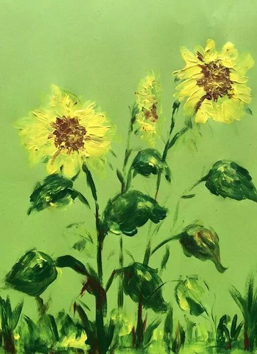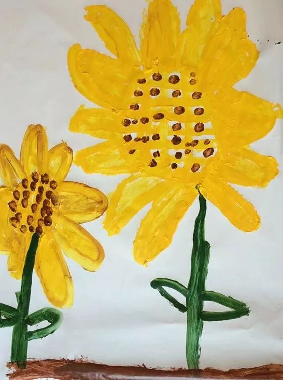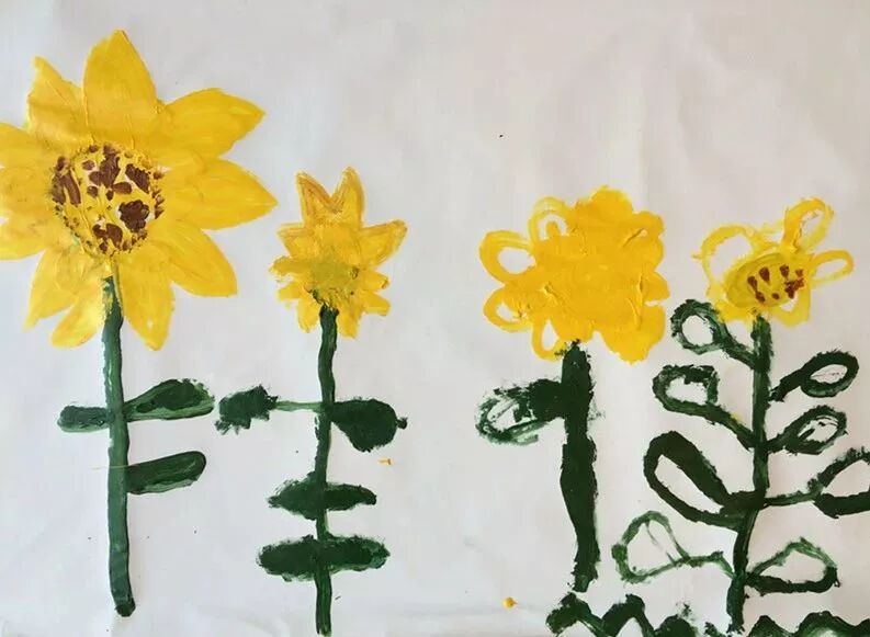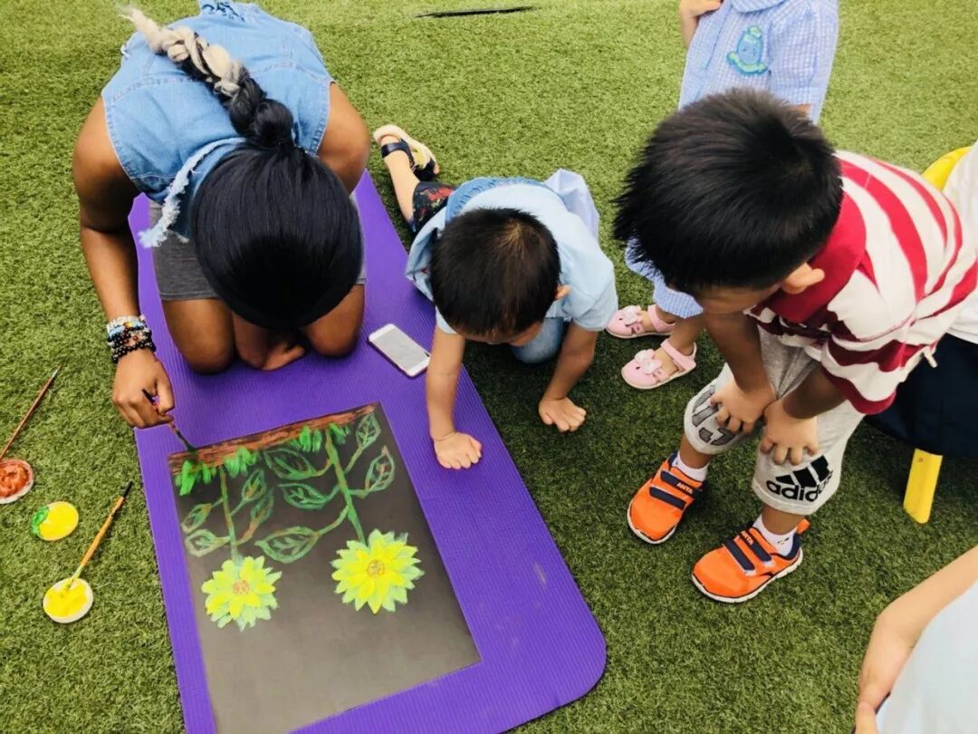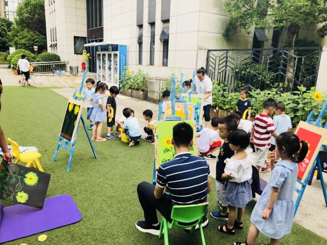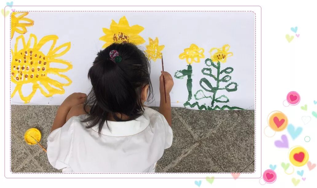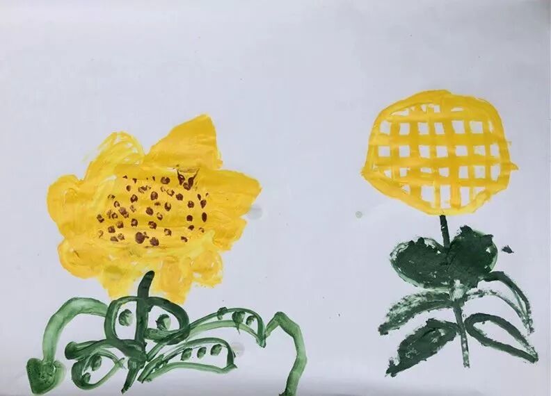 如今又延伸至艺术领域,在这种轻松愉悦特别自然的状态下,孩子们对颜料的运用、纸张的选择、线条的走向、向日葵的细节、脑海中的想象以及美感......都有自己不同的看法~