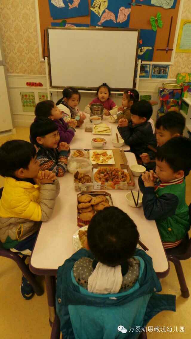 K2--C班的小朋友为了迎接这次的感恩节做了很多准备喲!周一小朋友有两张“按摩捶背卡”!完成了帮助爸爸妈妈的亲情按摩!并且亲手制作了爱心卡片送给家人!周二的护蛋活动,小朋友们当气了蛋宝宝的“爸爸妈妈”,一天都带着蛋宝宝一起吃饭、睡觉、游戏呢!体会到了爸爸妈妈带着小朋友们自己的辛苦!周四就是我们的感恩盛宴了!亲爱的爸爸妈妈、爷爷奶奶发动全家一起商量为小朋友准备什么好吃食物进行分享。在分享食物之前小朋友们在餐桌上进行祷告!在感恩树下一起分享了来自爸爸妈妈们美好的祝福!