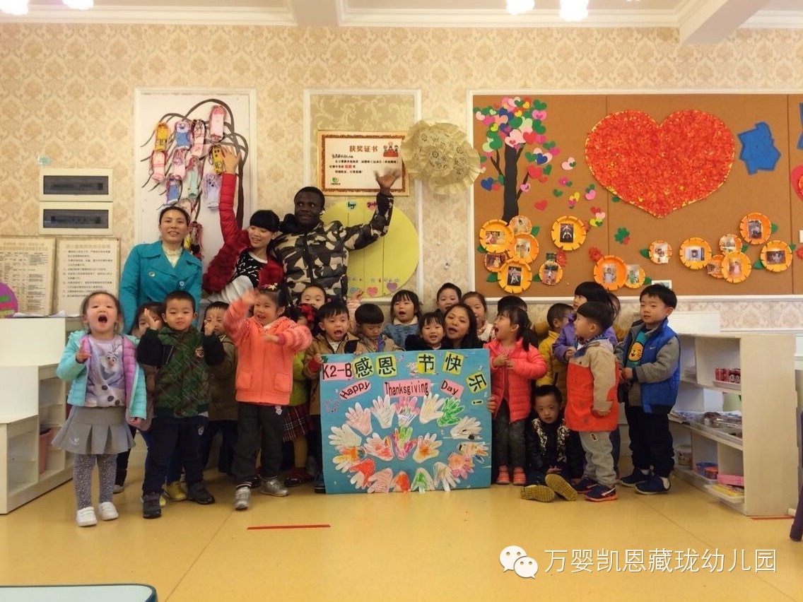 K1--B,感恩节活动主要以“爱、温馨”为主题,感恩家人、感恩老师、感恩同伴。分为三个部分,第一,发动家长带全家福的照片,然后在今天的课堂上,孩子们自己跟大家分享,他的家人。第二、手掌心的祝福。前期让每个孩子,用自己的手掌,画了一个模型,然后今天的活动中,孩子们述说,他要感谢的人,老师把他们记录下来,晚上带回家,送给家人。感恩家人的培养和陪伴。第三、孩子们在外教老师的带领下,扮演不同的角色,对同伴说:谢谢。感谢小伙伴们的一起玩耍。并把他们自己制作的爱心花,送给我们班上最辛苦的袁妈妈,我们感恩袁妈妈为我们创造最温馨、最整洁的教室。感恩所有老师教我们本领,和我们一起玩耍。还通过当老师的小助手,来表达他们的感恩之心。