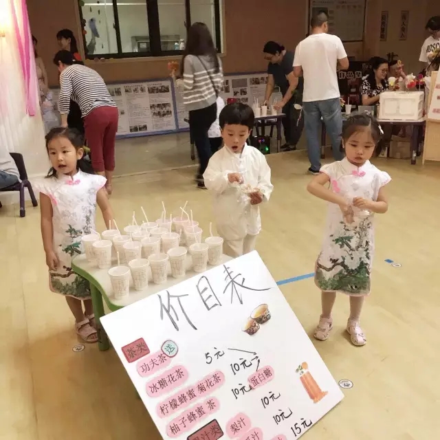 K2-A班的“茶艺馆”在“采茶女”的开场舞蹈中,带我们走入中国传统的茶艺文化,“小小茶艺师”向我们介绍不同花茶的功能、演示着功夫茶的倒茶步骤、品花茶等等,孩子们专注的神情、优美的动作、一颦一笑的享受其中,令人陶醉……