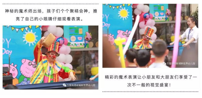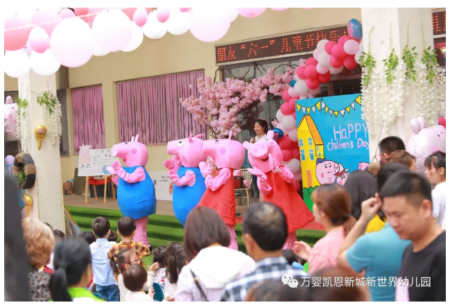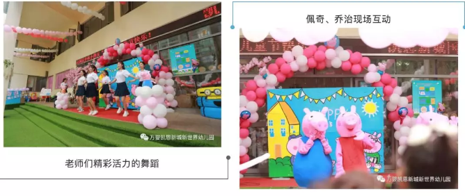 幼儿园里到处都是粉色的气球装饰,宛如一片浩瀚的粉色海洋,这里有可爱的小猪佩奇、小猪乔治,这里有精彩的节目表演,这里有神奇的魔术,这里有许多你意想不到的惊喜~