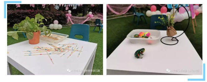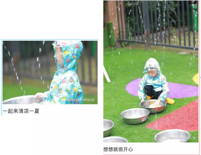 每一个孩子还在妈妈肚子里的时候,就是生活在“水”之中。所以,对于水,孩子们带有天生的亲切感,是孩子们游戏时的最爱。“小猪佩奇玩水”这个区域里有三个游戏,分别是跳水坑、穿越水帘洞、颜料滴画,前两个游戏让孩子们尽情地释放自己,颜料滴画让孩子们自由探索“水的形状与图案”,希望在炎热的夏天里,孩子们在这个区域能清凉一下!