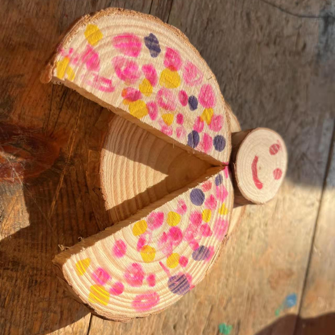 初冬暖阳,微风不燥。 这一天,我们的旅程要开始了~ 背上小书包,我们出发啦! 猜猜我们准备到哪去玩呢? 呀~抑制不住的开心😃 经过一个小时左右的车程, 我们到啦! 一下车,谁来接我们了呀? 噢!是松果老师哦。 进入农场,首先来个大合照吧~📷 走走停停~原来这里是一片农场,对这里的一切,我们都觉得很新奇。老师向我们介绍了许多很多植物和动物,我们认识了蒿子,据说春天来了可以做青团吃;看到了爬山虎,它可不是老虎哦,而是一种可以爬上墙的植物,在冬天它叶子是黄色的,老师说到了春天又会长出绿绿的叶子,太神奇啦! 老师常说“学习在窗外",果然,走出来,我们了解到很多以前不知道的事情! 好开心啦, 马上进入到我们的第一个环节~唇膏制作💄 橙子🍊老师在教我们制作唇膏~ 橙子老师很细致的讲解每一个步骤,当然我们也听的很认真,等下我们可是要自己动手制作的哦! 我们的唇膏有些不一样。 是用橄榄油🍯和蜂蜡一起做成的~ 听橙子老师说这唇膏可是纯天然的,可以吃的,但我们可不想吃掉,我们想做来送给最爱的人!想到这里,我们的心也是暖暖的! 我们开始第二个环节~烘焙(饼干🍪) 烘焙老师在告诉我们制作过程… 老师说了,要压实一点~😌 再压实一点~ 太有意思了吧!😃 你瞧我们多认真~↖(^ω^)↗ 搓搓搓~像我们玩黏土一样,搓搓搓…😃 制作了唇膏和饼干~我们心心念念的午饭终于到了!快走快走~ 有牛肉土豆,清炒白菜,西红柿炒鸡蛋 我们第一次这样围坐在一起,用餐盘吃饭,对我们而言,也是一个难得的体验吧! 太兴奋啦,马上就要探秘蜜蜂王国啦! 在探秘之前,松果老师给我们讲解了很多关于蜜蜂的小知识,还问了我们一个很搞笑的问题:"小朋友们,在你们家,谁最大!”我们异口同声说是妈妈!!哈哈哈,说完我们自己也笑了,原来在蜜蜂王国里,也有不同的分工——工蜂、雄蜂和蜂王,工蜂负责的事情很多,清理、守卫、喂养和采集等等,最辛苦的就是它了。雄蜂负责和蜂王生宝宝,蜂王呢,地位最高,主要负责产卵,而且一群蜂内只有一个蜂王哦! 哇哦,蜜蜂的蜂巢原来是这样六边形的,现在蜜蜂宝宝们基本都在冬眠,嘘,不要打扰到它们啦! 探秘完蜜蜂王国,我们来到了羊先生之家,小羊们太可爱了,它们喜欢吃新鲜的青菜,而且对我们很友好哦,哈哈哈,真想抱着它们在地上打几个滚。 从羊先生家回来,我们又来到一个好玩的地方,原来是个木工坊,我们自己动手制作一只可爱的小瓢虫哦。 松果老师给我们讲解制作步骤,我们听得可认真啦! 我们开始动手啦! 听起来容易做起来难,我们拿着锯子,可锯子一点都不听使唤,在老师的帮助下,我们终于将圆形的木块锯成了两半,哈哈哈,太有成就感啦! #老师想对你说# 尝试过许多第一次, 都不如与孩子挑战更多不同的每一次。 从告知孩子有这样的活动开始,到活动准备,再到活动中,我们走进自然大课堂,自制蜂蜜唇膏,饼干烘焙,拜访羊先生之家和蜜蜂王国,小小木工DIY……最后活动结束~ 孩子面对自然界的一花一草的表情都不一样,有可爱和新奇,也有疑惑和激动…孩子的每个表情都体现着自己的内心世界。原来~孩子的世界除了人类社会,还有大自然!一次与大自然的接触,我们看到了不一样的自己。 正如蒙台梭利所说~ 我看过了,我忘记了。 我听过了,我记住了。 我做过了,我理解了!