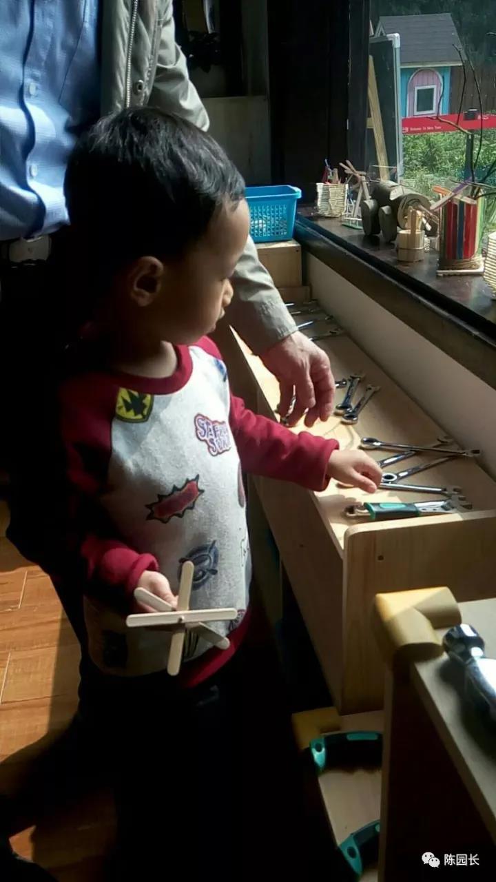 木工坊篇--这里的玩意真多,太多的不认识啦!我的眼睛都快看不过来了,嘿嘿!程程爷爷耐心讲解:“程程,这个是扳手,这个是启子,这个是刨子,这个可以将木材放在里面刨哦。”我们通过眼睛感受外面更广阔的世界……