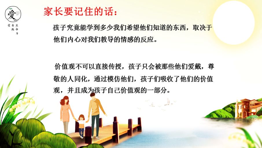 万婴克拉美丽幼儿园本次邀请爱·自然·生命力体系家庭教育导师孙芳为幼儿家长进行家庭教育知识讲座,用先进的教育理念和通俗易懂的事例让家长更易于理解,以便让家长充分认识家庭教育的重要性并了解正确的教育方法。 家庭教育,学校教育,社会教育是孩子成长过程中重要的三大教育,而家庭教育是学校教育中不可或缺的辅助教育,在孩子人生成长中起着重要的作用。家庭是孩子的第一课堂,父母是孩子的第一任老师,帮组助孩子扣好人生第一粒扣子,培养教育好孩子是每个家庭的大事。 家长平时要多学习家庭教育的知识,利用周边优秀资源,探索适合自己孩子的教育方法,把孩子培养成人成才。 教育从微笑开始,学会换位思考,站在孩子的角度考虑问题。 0-7岁孩子共有31个敏感期,要充分尊重不同敏感期阶段孩子不同的表现。 身教重于言传,提供和谐友爱的家庭氛围,坚持高质量陪伴。 讲师现场邀请家长参与游戏互动,运用实例向家长展示如何通过情境演练让孩子提高对于学习的兴趣。讲座结束后仍有许多家长不愿离开,向讲师咨询家庭教育遇到的问题和解决办法。 活动小结 感谢孙芳导师现场为家长答疑解惑,也感谢各位家长的积极参与,通过本次家庭教育讲座,我们传播的不仅仅是科学育儿理念,更多的是传递着我们社会的公益资源,让更多家庭和幼儿受益。 快乐教育·快乐人生 婴 万婴的教育不但注重习惯的培养,更重要的是,在习惯养成背后,在一个个外在行为的背后,我们同时还注重让孩子的自我得以顺其自然地发展,自主性得到保护和滋养。 事实上,我们坚信:让孩子有机会、有能力成为自己的主人,是我们能帮助孩子所做的最好的准备! 我们的教育追求,正是—让孩子做自己的主人! 摘录自