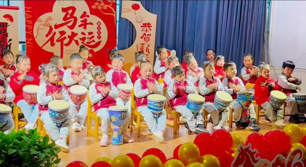 活力满满的新年节奏,整齐拍手律动搭配非洲鼓,跟着欢快旋律蹦跳摇摆,节奏卡点有模有样,清脆笑声裹着年味,尽显童真活力。