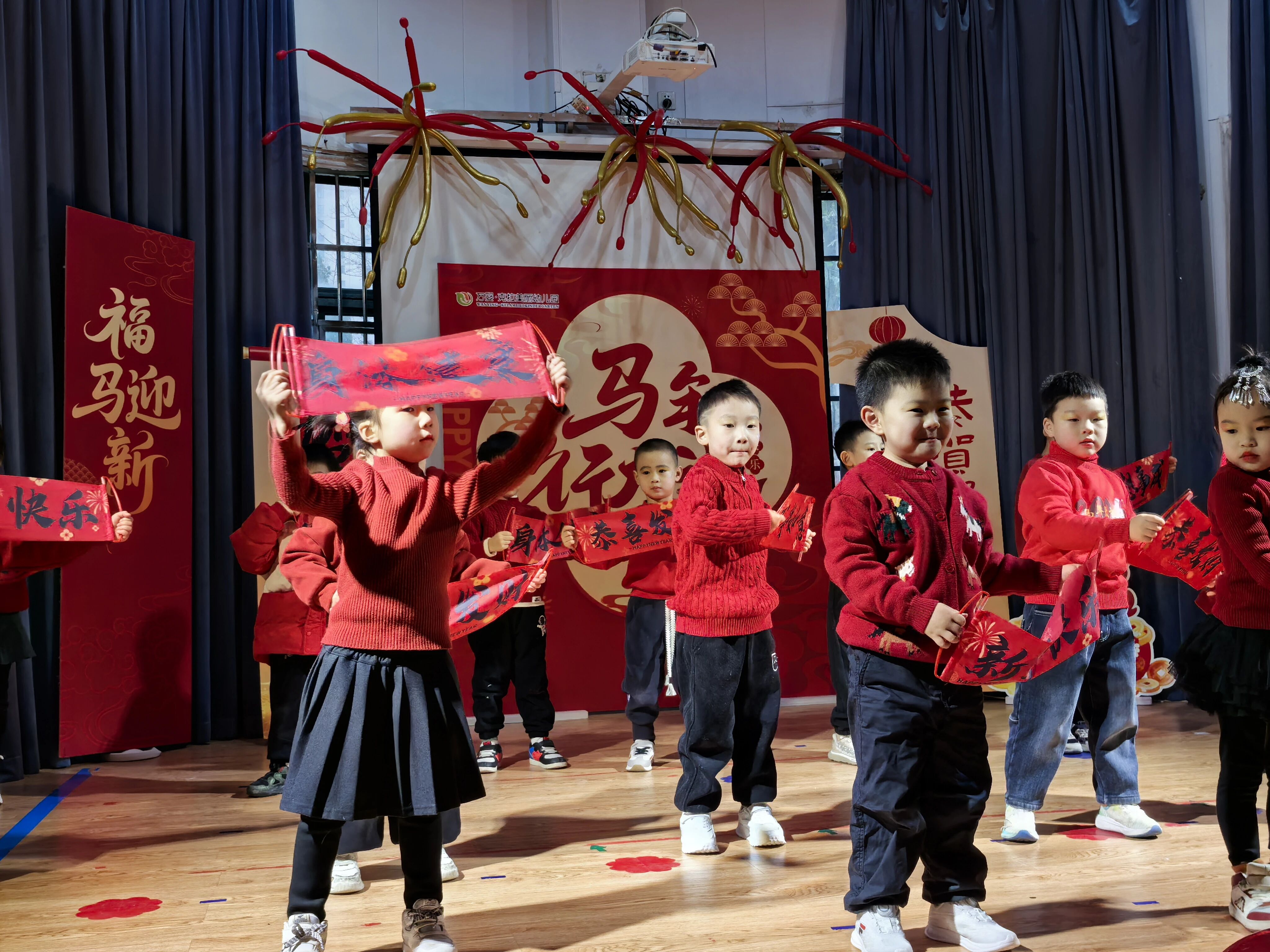 新年舞蹈是本场汇演的核心亮点,各班宝贝身着喜庆服饰,用灵动舞姿贺岁迎新,每一支舞蹈都藏着专属萌趣与成长风采,小主持人串场解说,让年味与童趣拉满全场!