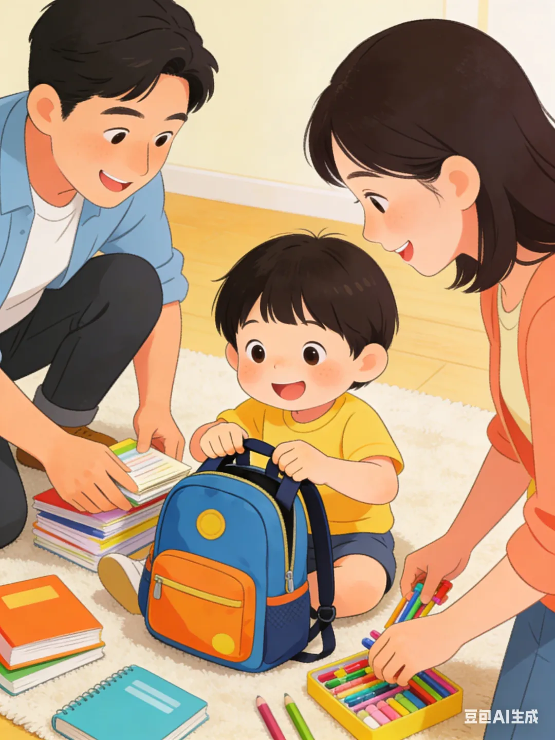 2. 陪宝贝动手整理书包,将水杯、汗巾等日常用品有序摆放,在亲子协作中感受“开学的小仪式”,让宝贝对返园充满期待。