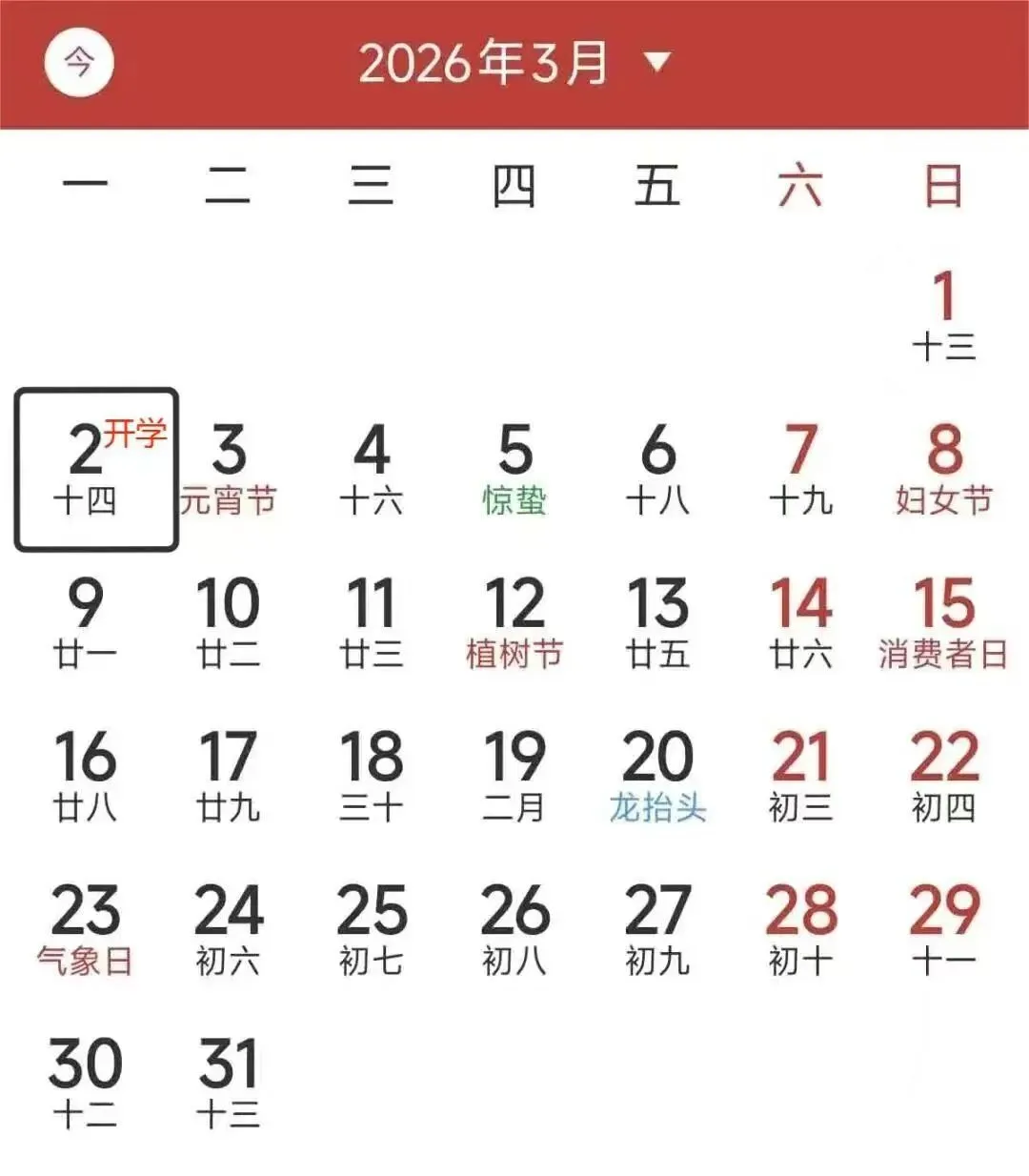 2026年3月1日(星期日)