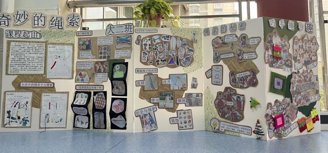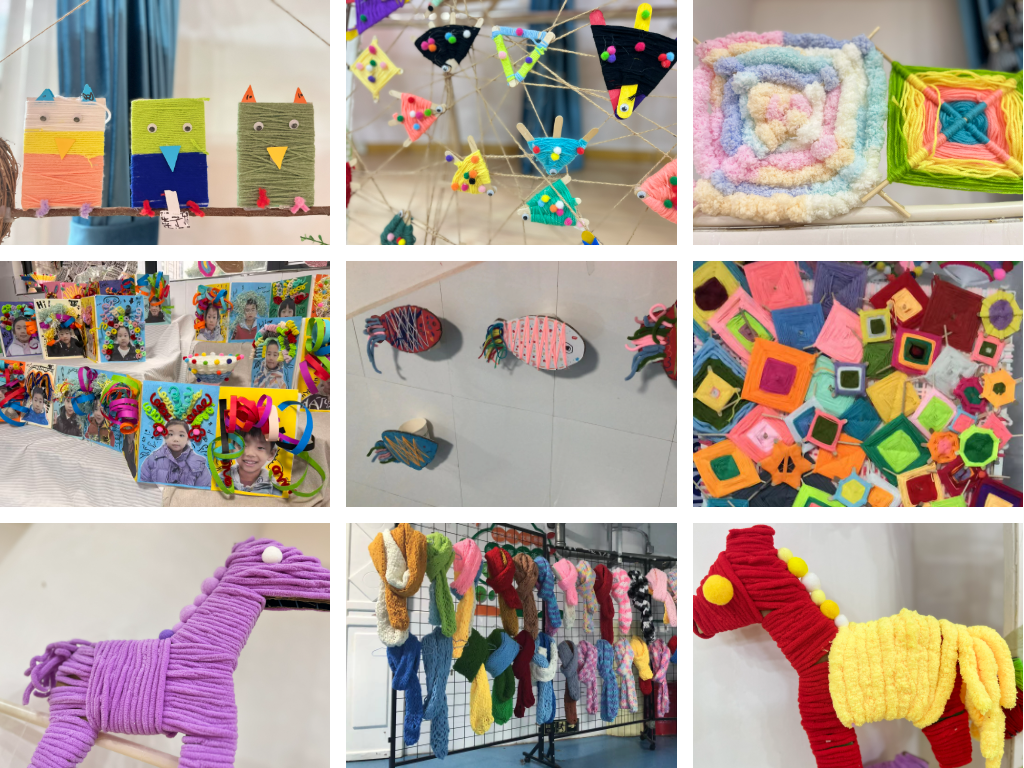 在《奇妙的绳索》课程中,孩子们用绳子缠绕、编织、粘贴,创作出了充满想象力的作品。有的是色彩斑斓的“绳结花朵”,有的是用绳线勾勒的小马,还有的是用绳索给自己加上各种各样。一根普通的绳子,在他们手中变成了表达创意的画笔。