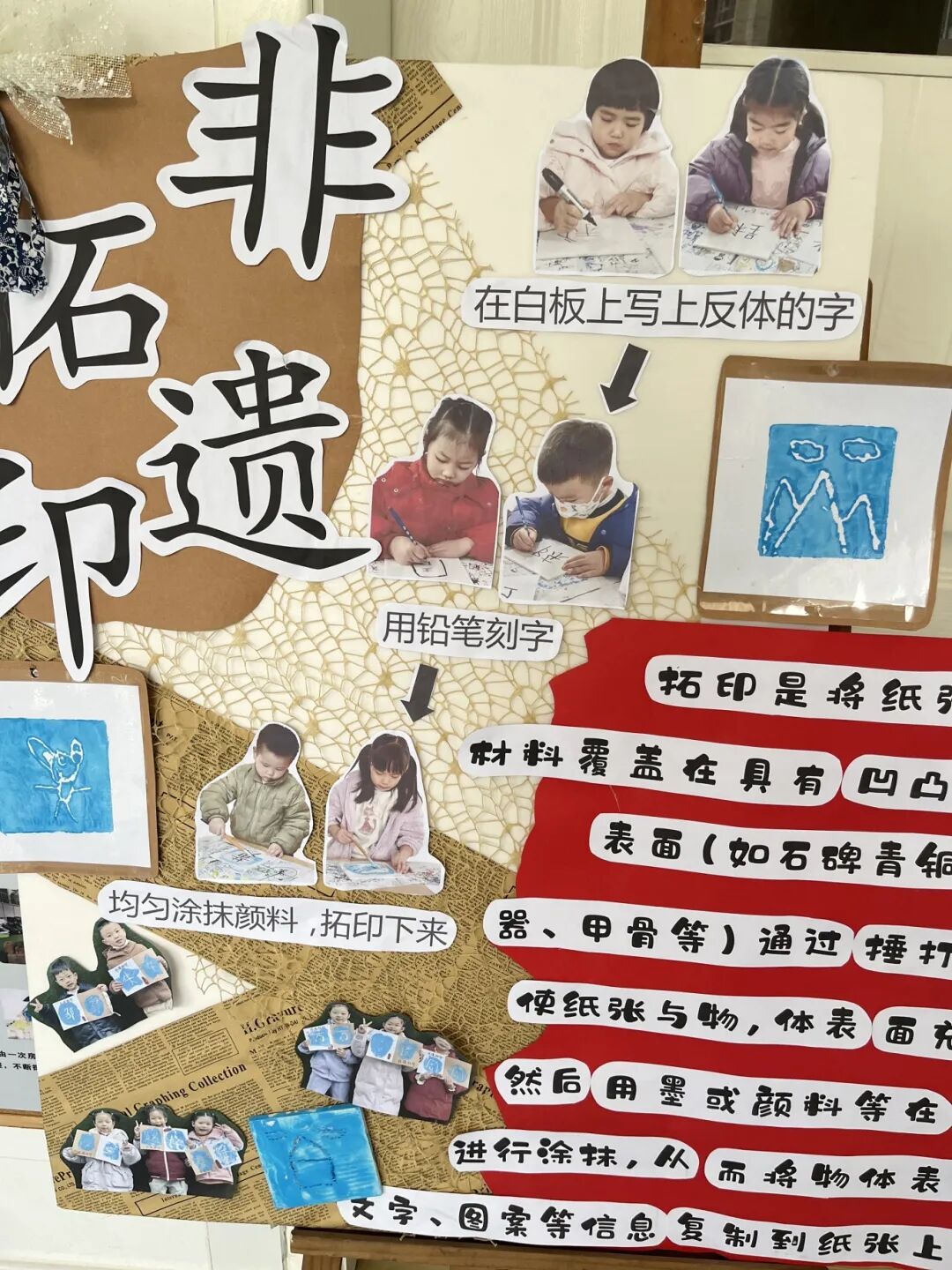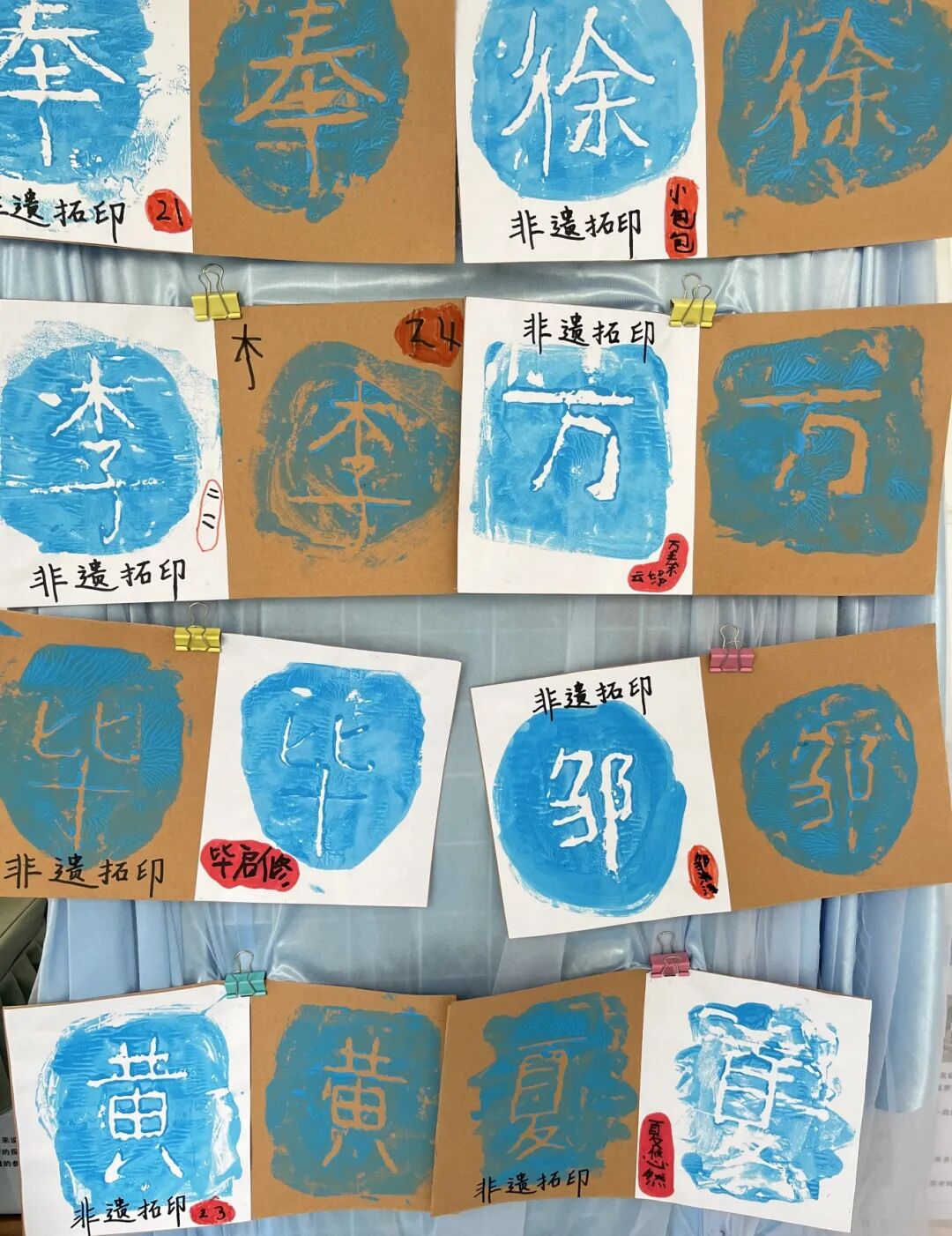 在《有趣的汉字》课程展区,孩子们把自己的姓氏做成了拓印作品。把整个拓印过程给记录了下来。他们在拓印的过程里,不仅认识了汉字的形态,更触摸到了传统文化的温度。