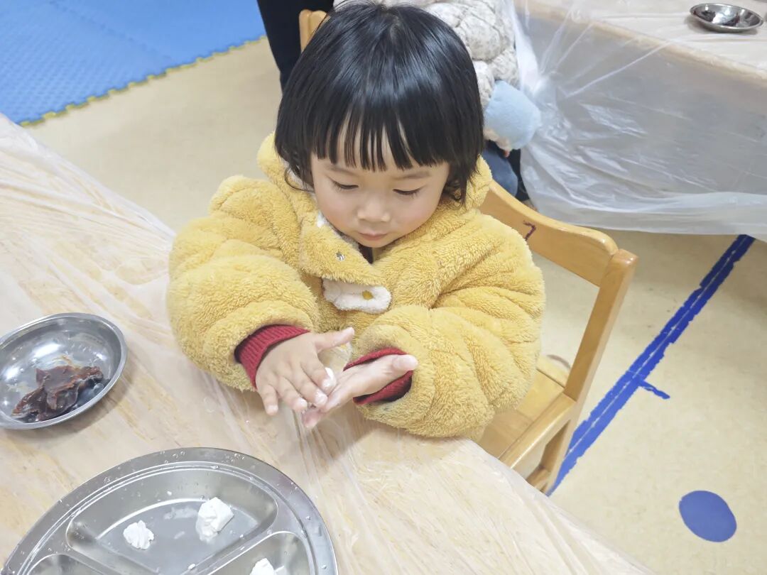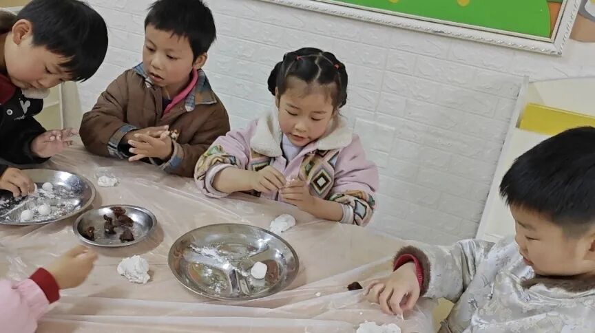 揉一揉、捏一捏、团一团,在老师的指导下,孩子们化身小小美食家,亲手制作软糯可爱的汤圆。小小的汤圆,裹着甜蜜,藏着团圆,大家在动手过程中感受劳动的快乐。