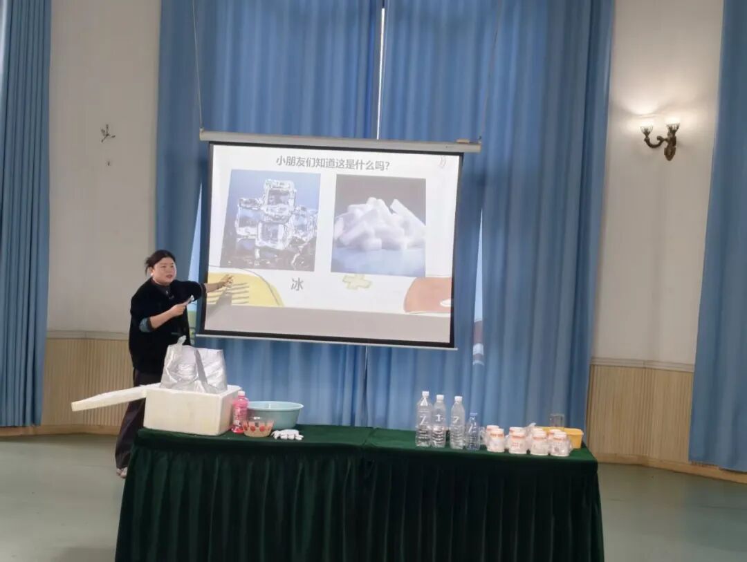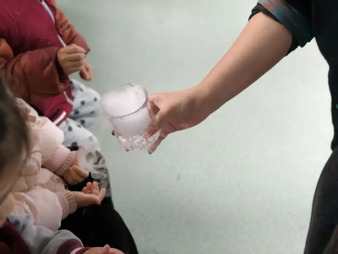 近日,万婴株洲恒大名都幼儿园55班(中班)开展了一场超精彩的「家长进课堂」科学主题活动——神奇的干冰。李斯远(毛豆)妈妈化身“小老师”,带着孩子们沉浸式探索干冰的奥秘,用一场充满惊喜的科学小实验,让孩子们在玩中学、学中乐,也让我们看到了万婴株洲恒大名都幼儿园的教育温度与专业实力。