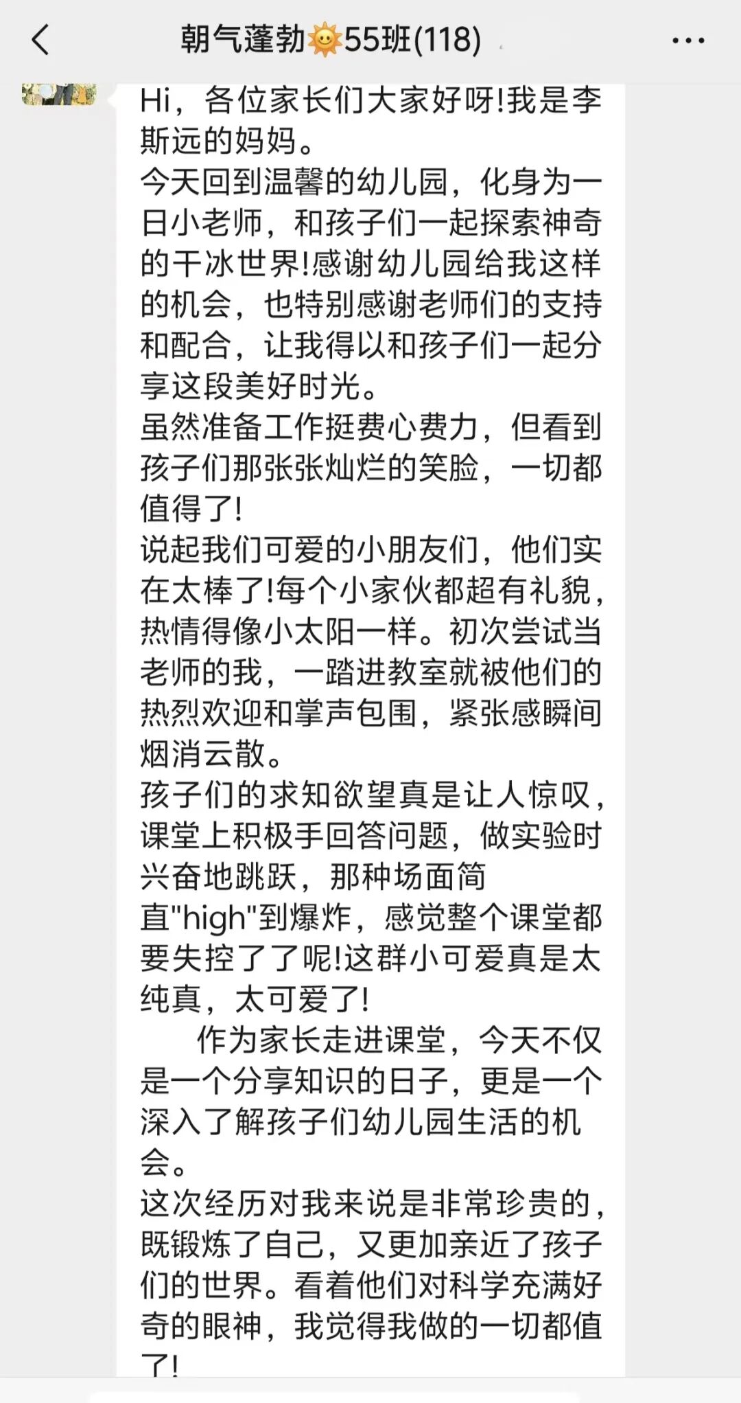 课堂上,孩子们求知欲拉满,积极举手回答问题,做实验时兴奋跳跃,一张张灿烂的笑脸,就是这场活动最棒的成果。毛豆妈妈也感慨:“虽然准备费心费力,但看到孩子们的笑脸,一切都值得了!”
