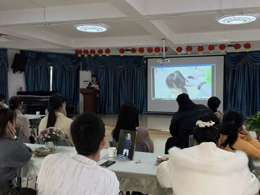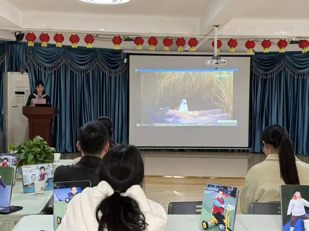 随后,家长们一同观看《幼儿教师的一天》视频。从清晨接园、晨间活动、教学游戏、餐点午睡,到离园沟通、卫生消毒、下班回家……