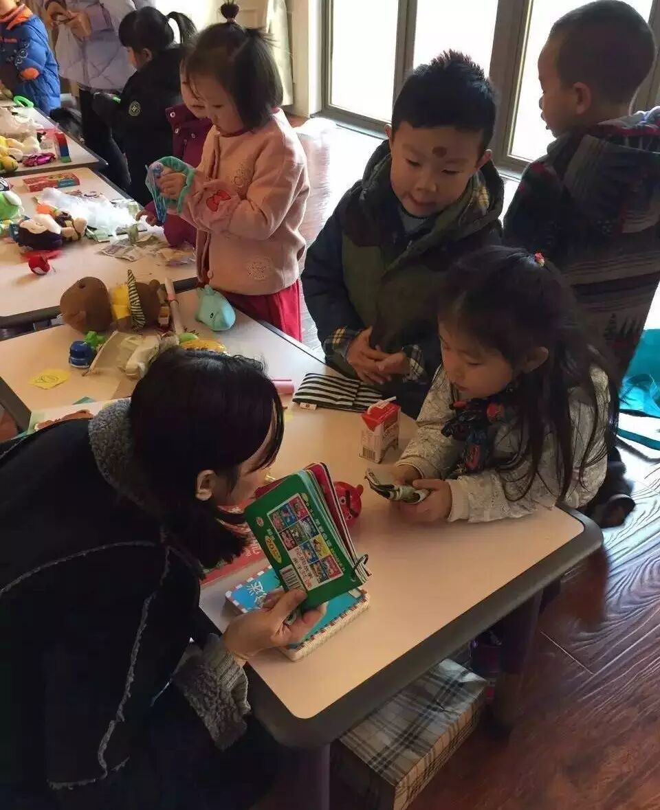 义卖活动中,孩子们大胆地和客人进行沟通,主动思考多种方法售卖着自己的商品 。