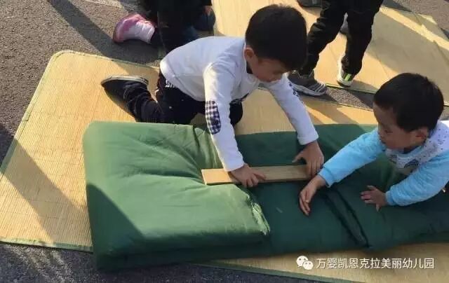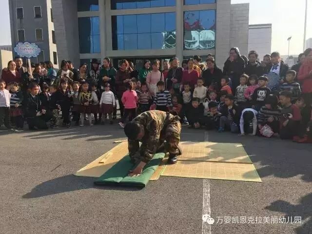 参观完消防设备后,消防员叔叔给我们展示了被子的叠法,看到叔叔拿着棍子叠被子,我们心都充满了好奇:“原来被子还可以这样叠。”消防员叔叔一边操作,一边还为孩子们做详细的讲解,被子在他们的手上变得有棱有角!太给力啦!