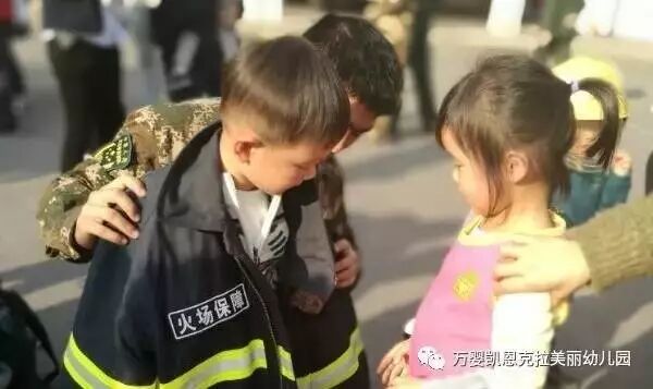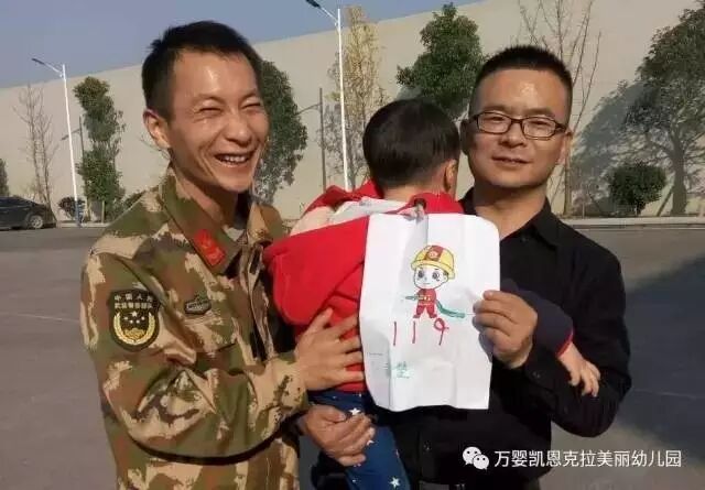 我们亲手制作的小礼物,送给了我们敬爱的消防员叔叔,并献上了爱的抱抱,留下了最美好的回忆。