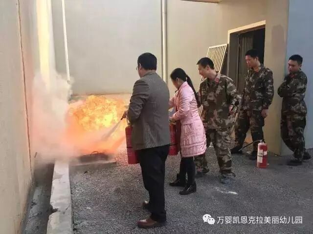 请爸爸妈妈来体验使用灭火器,让爸爸妈妈更直观的了解灭火器的使用方法,为我们的安全保驾护航。