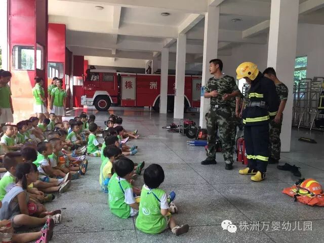为了加强孩子的消防安全意识,8月17日上午,万婴株洲恒大名都幼儿园的孩子们在老师的带领下来到了天元区消防大队,与消防员叔叔开始了一次近距离接触。跟随小编一起去看看吧! 走进消防队 一走进消防大队,红色的消防车、神气的消防服、金属切割器……,立刻吸引了孩子们的目光,消防员叔叔根据幼儿的喜好和心理特点,采取通俗易懂、生动形象的方式,向幼儿讲解了发生火灾时怎么办、如何报警求助等消防安全常识,并且为孩子们演示了灭火器的使用,做了一次“小小消防员”。随后,当孩子们来到消防队员叔叔们的宿舍,看到有棱有角的被褥、摆放整齐的物品,孩子们都忍不住惊叹起来“哇,好整齐哦”,由衷地表达了他们对消防员叔叔们的喜爱和敬意;户外场地上,孩子们还观看了消防员训练,高难度的动作、花样式水枪,云梯车,孩子们不时为消防员叔叔们欢呼喝彩,消防官兵勇敢、守纪的品质也将激励着孩子们健康成长。 看我穿着消防叔叔的消防衣是不是很神气呀~~~~ 消防员叔叔为我们演示了他们作业时灭火的操作,让我大开眼界!真要为奋战在一线的消防叔叔点赞! 通过参观及体验活动,孩子们真实直观地感受了消防员叔叔的生活,了解了消防车、消防工具,拓宽了他们的视野,提高了他们的安全意识和自我保护能力。这就是我们万婴快乐生态课程中生活即课程的一种体现,让幼儿从生活中学到更多的知识。 看见这么有趣的活动还在等什么,赶快加入我们吧! 万婴恒大名都幼儿园欢迎您! 学位抢定热线:0731-22323828 18169336963(小熊老师)