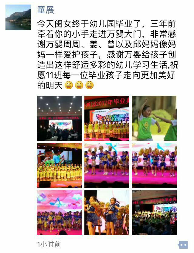 我们在这个充满关爱的大家园里一天天地长大。今天,我们毕业了,不久就要进小学,
