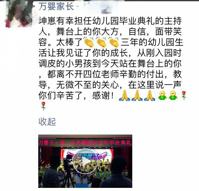 “幼儿园里的生活与学习给小朋友、老师及家长们带来了美好而又难忘的回忆,我们有太多的不舍、有太多的感动,最好的时光我们有最美的遇见”