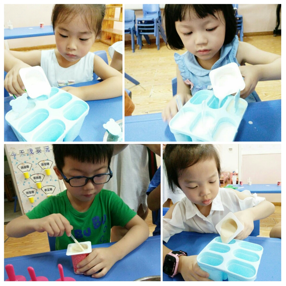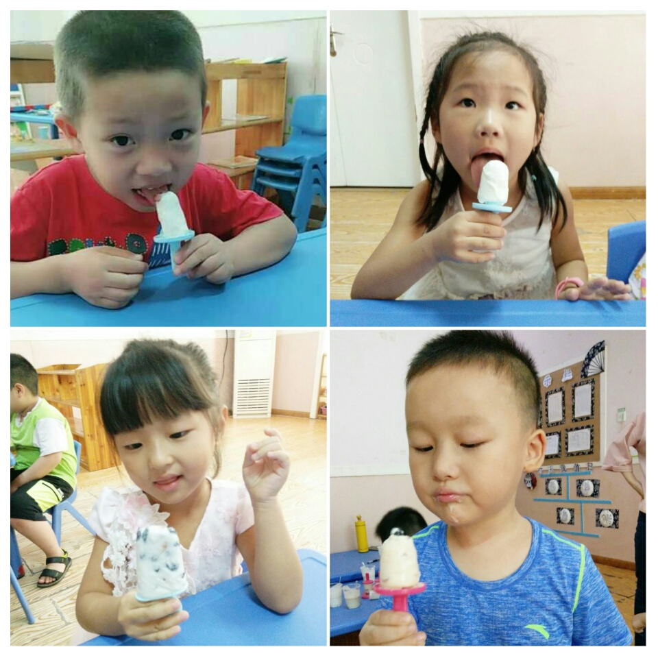这一次孩子们从回忆吃冰棒,认识制作材料,熟悉制作过程到亲自制作,看起来简单却又有趣又神奇。午休时间还在惦记冰棒有没有冰好,起床是不是可以吃了。可能味道没有商店买的美味,也没有那么好看,但是在孩子们说:这是吃过最好吃的冰棒