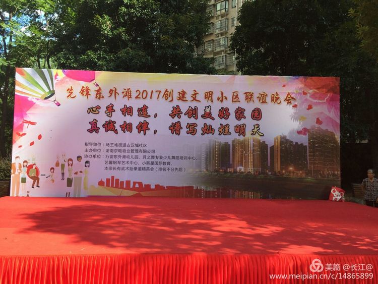 8月29日晚,先锋东外滩小区举办了一场《心手相连,共创美好家园,真诚相伴,谱写灿烂明天》的主题晚会。