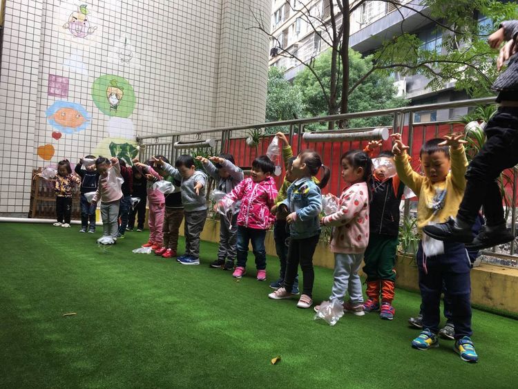 万婴东外滩幼儿园32班科学小实验之绽放的空中花朵――降落伞