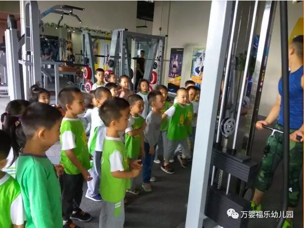 健身房的教练哥哥给我们示范和讲解健身器材的名称和是怎样使用的: