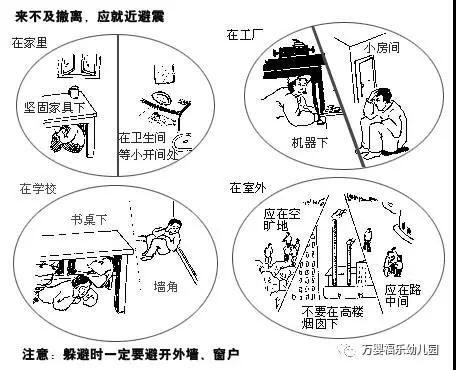 涛涛:地震来了先要躲起来,不能跑,等没有地震了再往外跑。