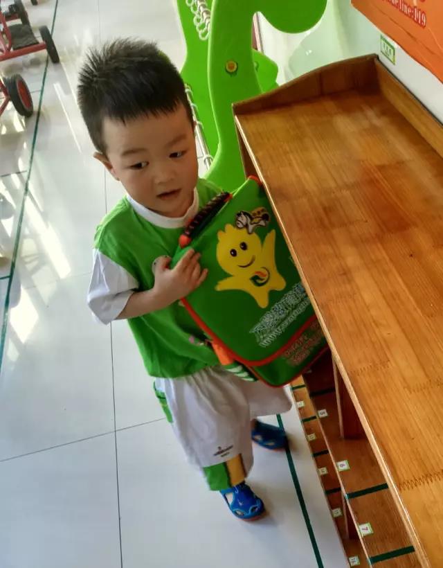 现在啊,普钧带着自己最喜欢的托马斯火车,自己背着书包,很乖的去洗手,给医生妈妈看喉咙;看了喉咙后,普钧就能自己将书包放进书包柜;会将晨检卡插到自己的学号上。
