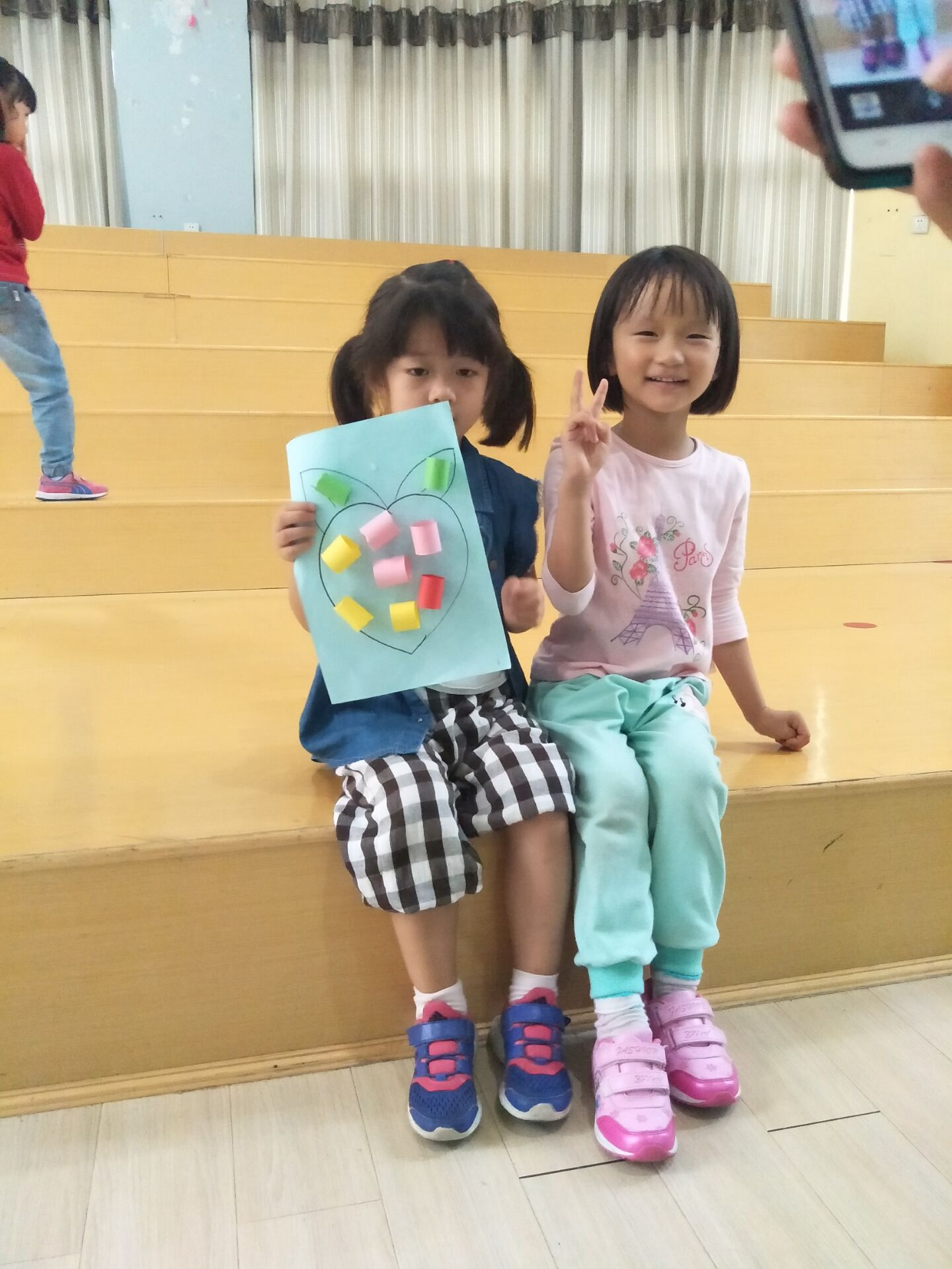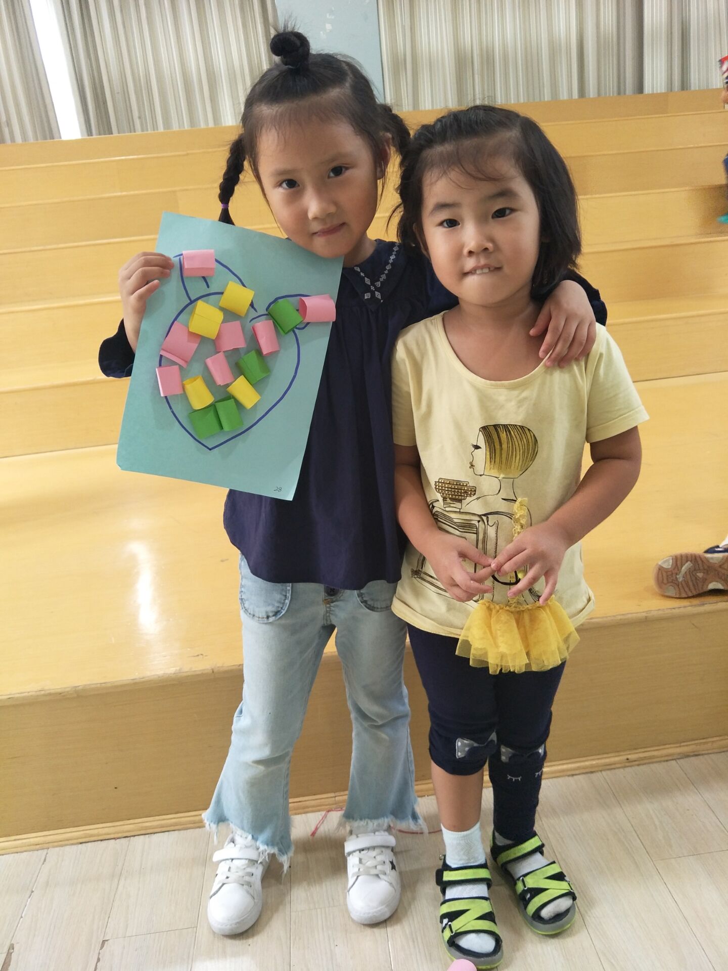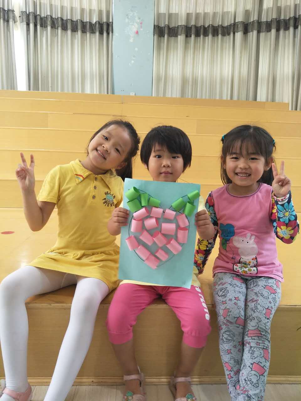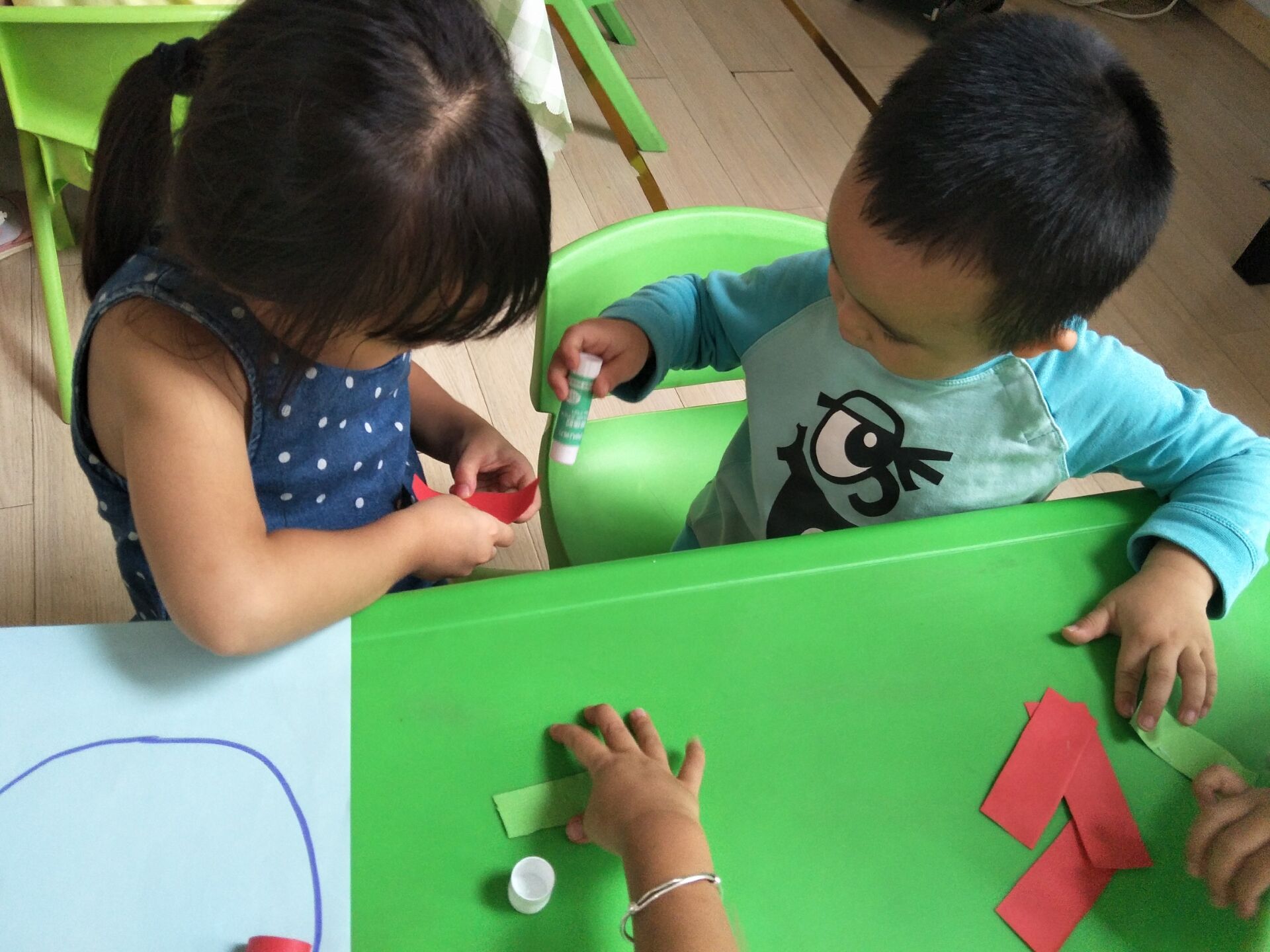 大哥哥姐姐细心耐心的与弟弟妹妹一起制作手工,给水果宝宝穿上新衣服。