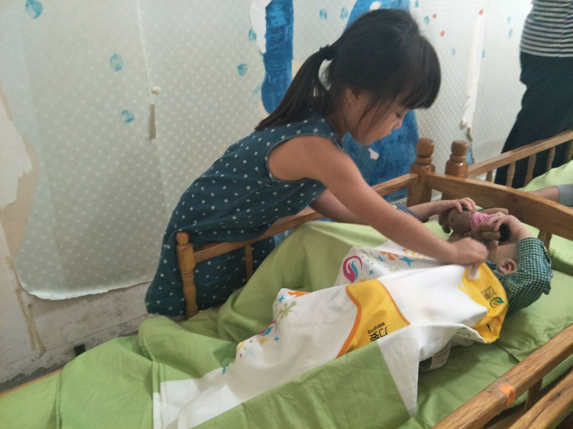 盖好被子不着凉,好好睡觉长高哦。