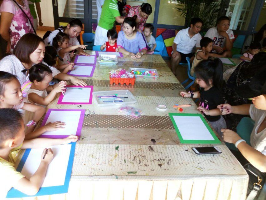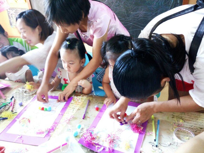 有水彩的手掌印画,还有各种材料结合的DIY素材画,孩子们有了爸爸妈妈的帮助,似乎更有干劲了,一个个都创造出了好看的作品来。