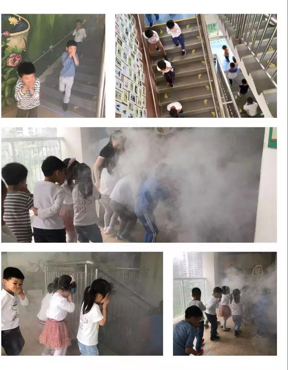 下午15点20分, 突然间,警报响起,万婴格林园冒出阵阵浓烟,着火啦!小朋友在老师的带领下,迅速找到消防通道,用湿毛巾捂住口鼻,弯腰有序地前往安全地带。
