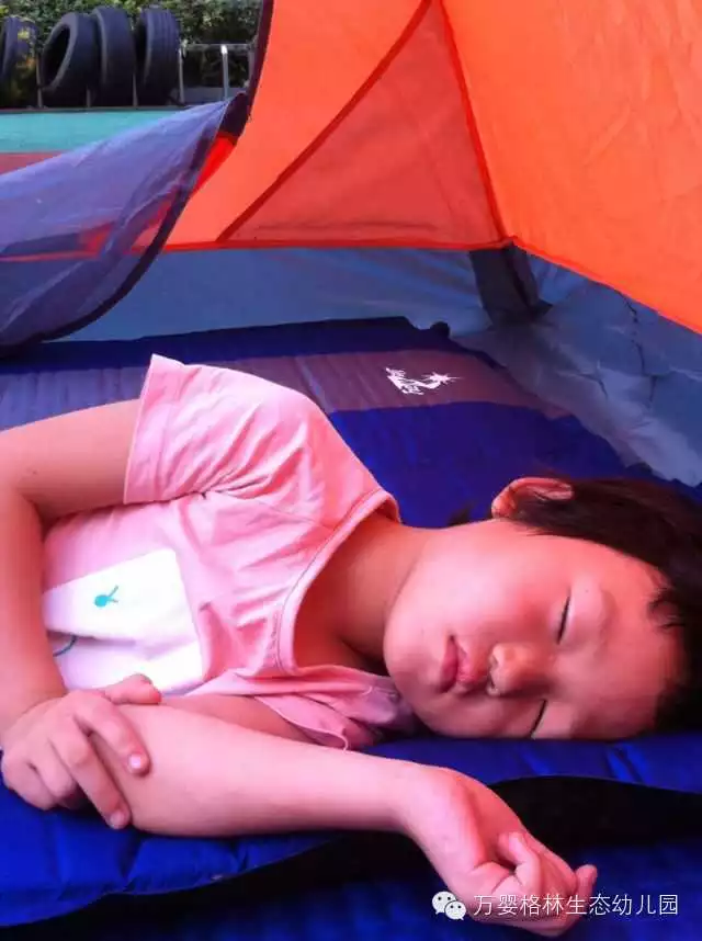 当清晨第一缕阳光撒入帐篷里,宝贝们依旧酣睡。爸爸和老师们温柔的唤醒宝贝们:“起床啦,太阳晒屁股啦。”