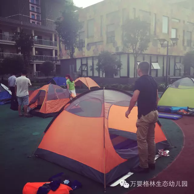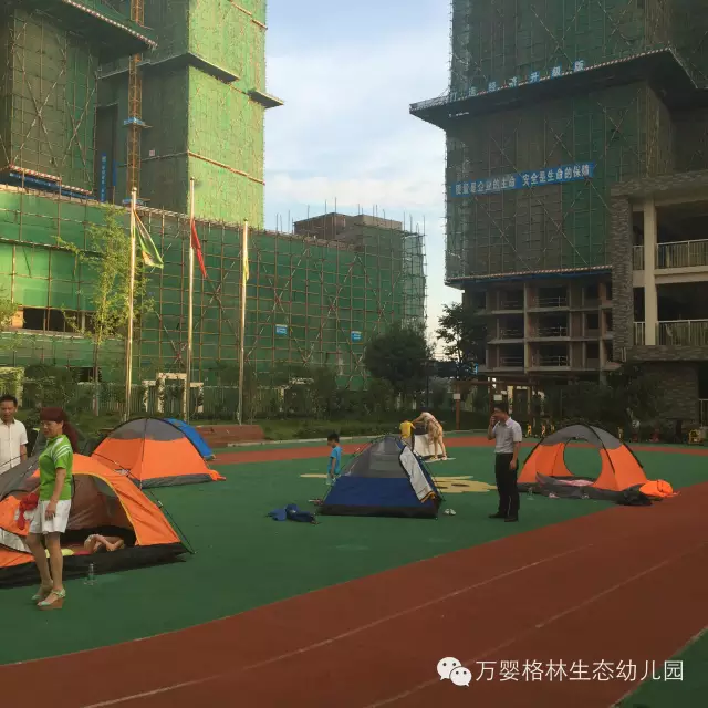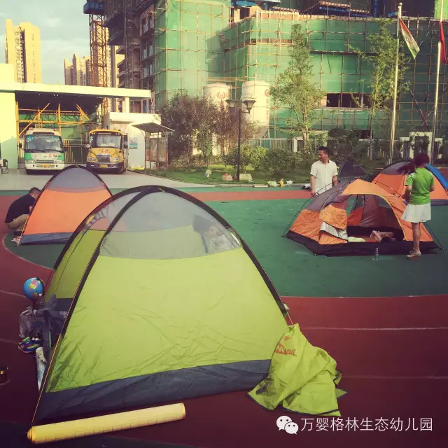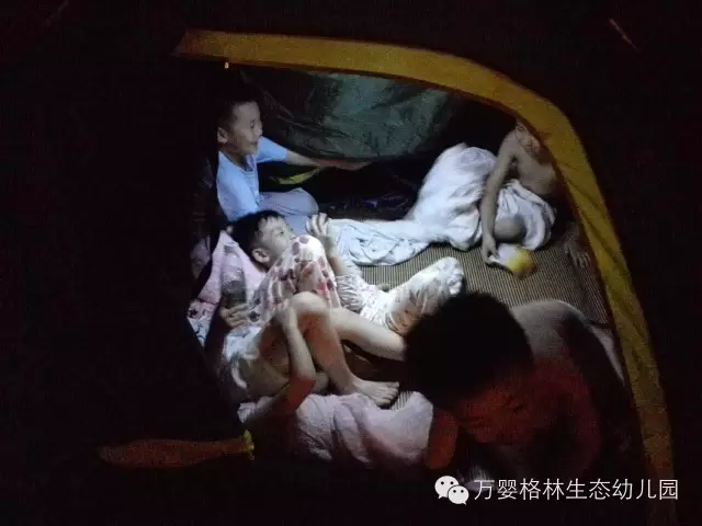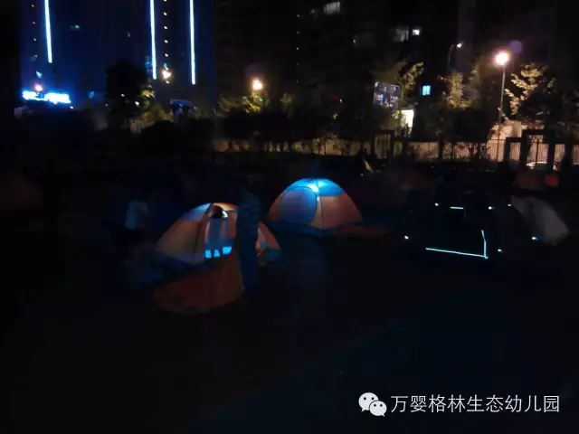 帐篷中透露的营地灯,将寂静的校园点缀的格外可爱,有如天空中的繁星点点,还有宝贝们铜铃般的笑声使得这个夜分外温馨。