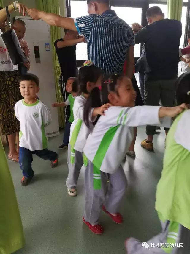 惊喜不断,一个接着一个,园长妈妈亲自主持,在男神爸爸都进园之后,女神妈咪手牵手,围成了一个大大的圆圈,将男神爸爸围在了中间,跟随着音乐,玩起了我们宝贝们最喜欢玩的吹泡泡游戏,吹泡泡,吹泡泡,吹一个大泡泡,吹泡泡,吹泡泡,吹一个小泡泡。。。。通过吹泡泡的游戏,我们大部分的男神爸爸从羞涩中适应了过来,接下来我们一起跳起了兔子舞和洗衣舞。