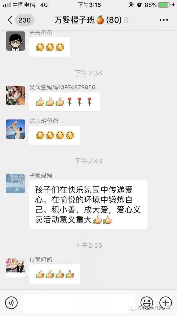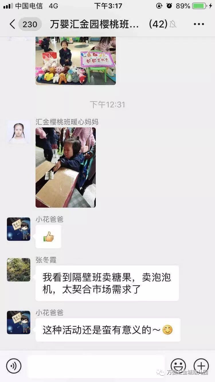 宝贝们在活动中获得了快乐,也传递了爱心。同时,也让宝贝们懂得了珍惜资源,提升了他们的社会交往、语言表达能力,又培养了孩子对货币交易的初步认识。此次活动也获得家长们的认可,纷纷点赞、发圈。特别感谢家长的支持与认可,因为有你们,我们会更加努力,一同携手助力孩子成长!