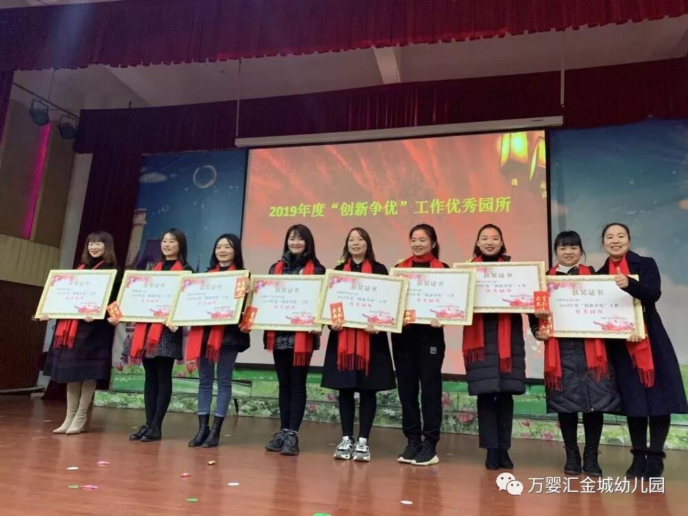 乘着幸福的歌声,载着喜悦的欢笑,我们迎来了充满希望的2020新春,也悄悄地送走了硕果累累的2019年 新的一年,新的征程 新的祝福,新的期待 回首2019,我们满怀豪情 展望2020,我们重任在肩 成功伴着艰辛,收获伴着汗水 在充实忙碌的每一天中 我们迎来了崭新的2020年! 2019年是收获的一年, 是万婴汇金城幼儿园硕果累累的一年 会场 教职工入场 主持人开场 园长致辞 节目表演 万婴汇金城幼儿园的教职员工们多才多艺,为了本次年会活动,老师们准备好了节目,看,他们在年会的舞台上大放光彩! 抽奖环节 欣赏年会的同时,当然少不了激动人心的抽奖环节。在年会上,分别抽取了特等奖、一、二、三等奖等,并颁发了相应的奖品,通过这些奖项的设定,也表达了幼儿园的一份心意,感谢各位老师一年来她们“舍小家为大家”,团结合作,无私奉献的精神。 年度颁奖 兢兢业业,一丝不苟,是你的工作态度,你们乐于奉献, 任劳任怨,一致获得家长的好评,孩子的喜爱,同事的认可!多年来风雨兼程、尽心尽责,以主人翁的强烈责任感,挥洒心血、智慧和汗水对万婴汇金城幼儿园做出巨大的贡献 万婴之星 优秀个人 优秀班级 优秀集体 2019年对于万婴汇金城幼儿园来说也是硕果累累的一年,在万婴教育集团年会上,我们分别获得“优秀集体”、“优秀管理者”“爱心公益”园所“创新争优”优秀园所等九大奖项,并获得业内外人士的一致好评。 活动聚餐 玩乐放松过后,我们一同来到酒店,一起共度晚餐。这一刻你们是最美的老师,让时间定格在这一刻,合影留下这美好的瞬间! 在汇金园, 有我们对生活的激情, 更有我们对未来的渴望 ! 因为,我们始终相信: 汇金城幼儿园的未来, 会越来越好! 我们的明天, 也一定会更美好! 感恩家人们一路相伴,同力同行! 2020让我们一起手牵手, 自信的向前走, 用爱和专业 守护孩子们的幸福童年。 再次恭祝大家 新年快乐! 万事如意,心想事成!