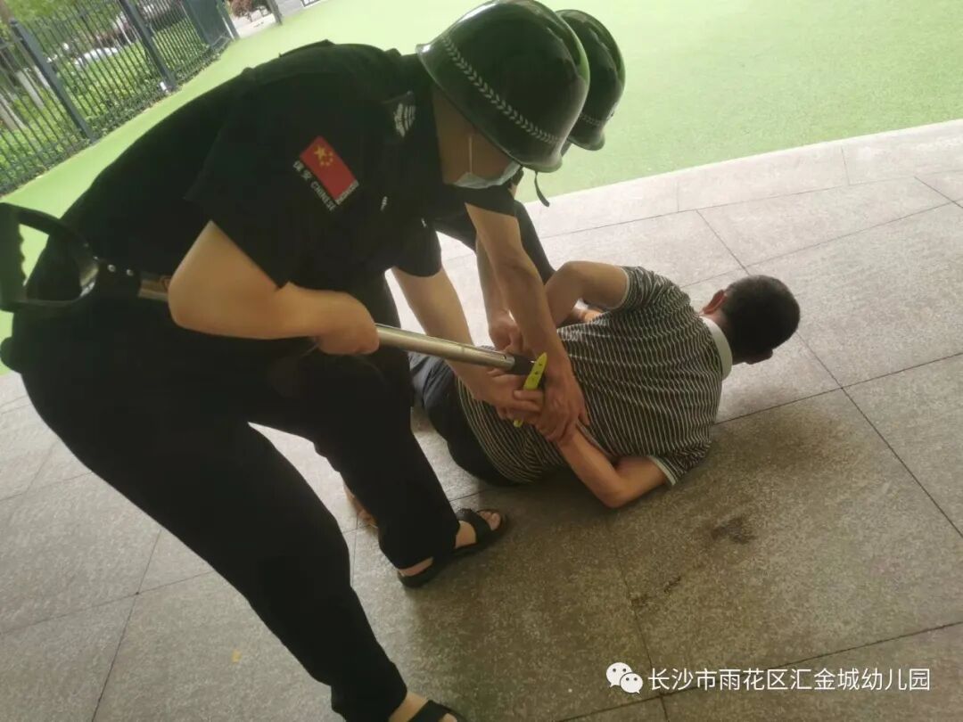 一名“歹徒”在幼儿园东张西望,谎称是小朋友的家长,来接自己的孩子。保安询问孩子所在的班级和姓名,对方却答不出来叫嚣着要进入幼儿园,随即开始翻大门硬闯入园。