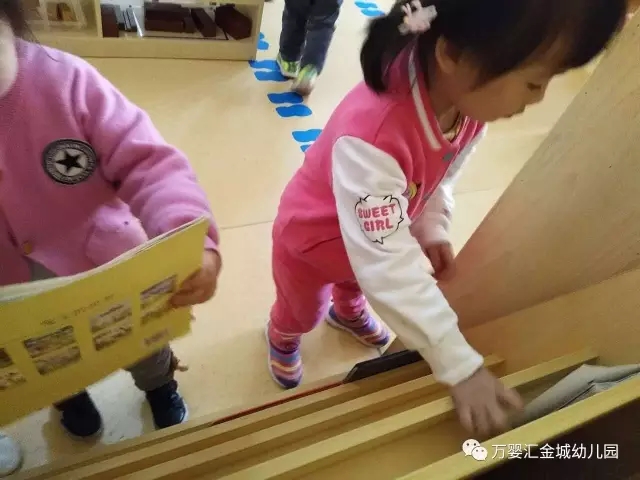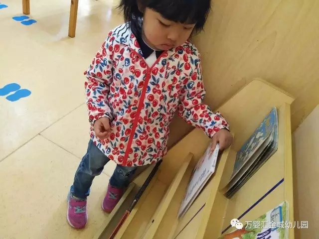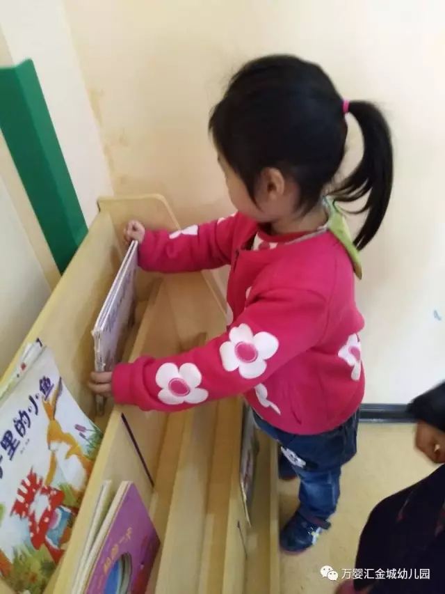 看看我的小手多么多么的能干,书看完后要放回书架哦,并且要摆放整齐哟。