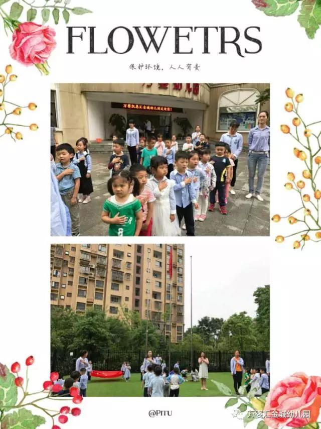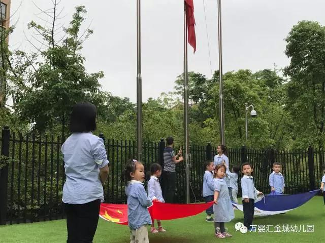 我是光荣的国旗手,看我昂首挺胸的保护着国旗和园旗。