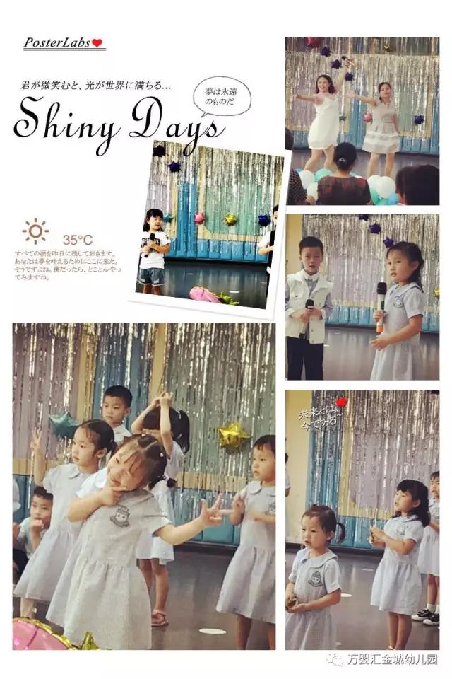 时间时间就像飞鸟,滴答滴答向前跑,转眼一学期又接近尾声,为了让孩子们提高胆量、增强自信,老师们提前做了各种工作的准备,让家长们感受到孩子成长中的点滴进步。“光阴似箭,日月如梭”一个学期的时间飞快就过去了,孩子们收获多多,家长们的感触也深深。“光阴似箭,日月如梭”一个学期的时间飞快就过去了,孩子们收获多多,家长们的感触也深深。欢快的节奏催人奋进,跳动的音符荡人心弦。孩子们用优美的舞蹈、动听的歌声向爸爸妈妈证明一学期的点滴进步。炎热的夏天来了,西瓜是大家最爱吃的的水果。小朋友们用舞蹈来告诉大家”不乱扔瓜皮、爱护卫生“的道理。小小的树需要营养才能长高长大,孩子们需要锻炼才能长大懂事;毛毛虫经过不断吃和睡最后蜕变成美丽的蝴蝶,孩子们经过一次又一次的磨炼最后成长。美丽的白天鹅叫人羡慕,丑小鸭也同样可爱;美丽的春天美丽的歌,孩子们用戏剧表演感受到美由心生,心善则美,相信自己会蜕变成美丽的白天鹅。愿孩子们的明天会更好;愿万婴汇金城幼儿园的明天会更好!