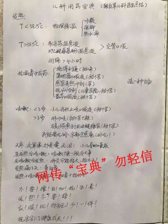 一份近期盛传的《儿科用药宝典》刷爆朋友圈,头疼、发烧、咳嗽都有解决办法,南京市中西医结合医院儿科主任边逊表示,宝典是不是儿科医生写的还不知道,虽然有一定道理,但过于公式化,如果按这个宝典照方抓药很可能延误患儿病情。