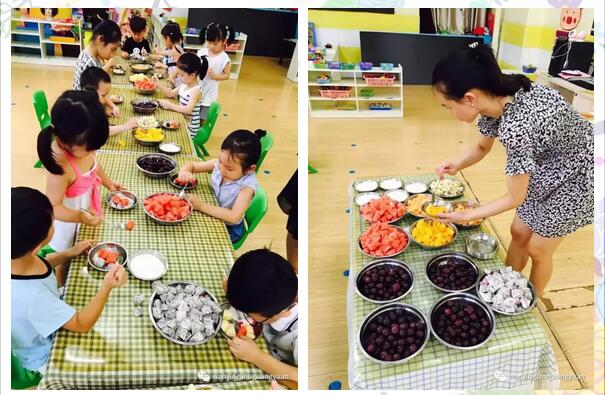 【活动目的】1.愿意与同伴一起分享。2.学会制作水果沙拉,增强动手能力。3.了解夏天水果的种类和特征