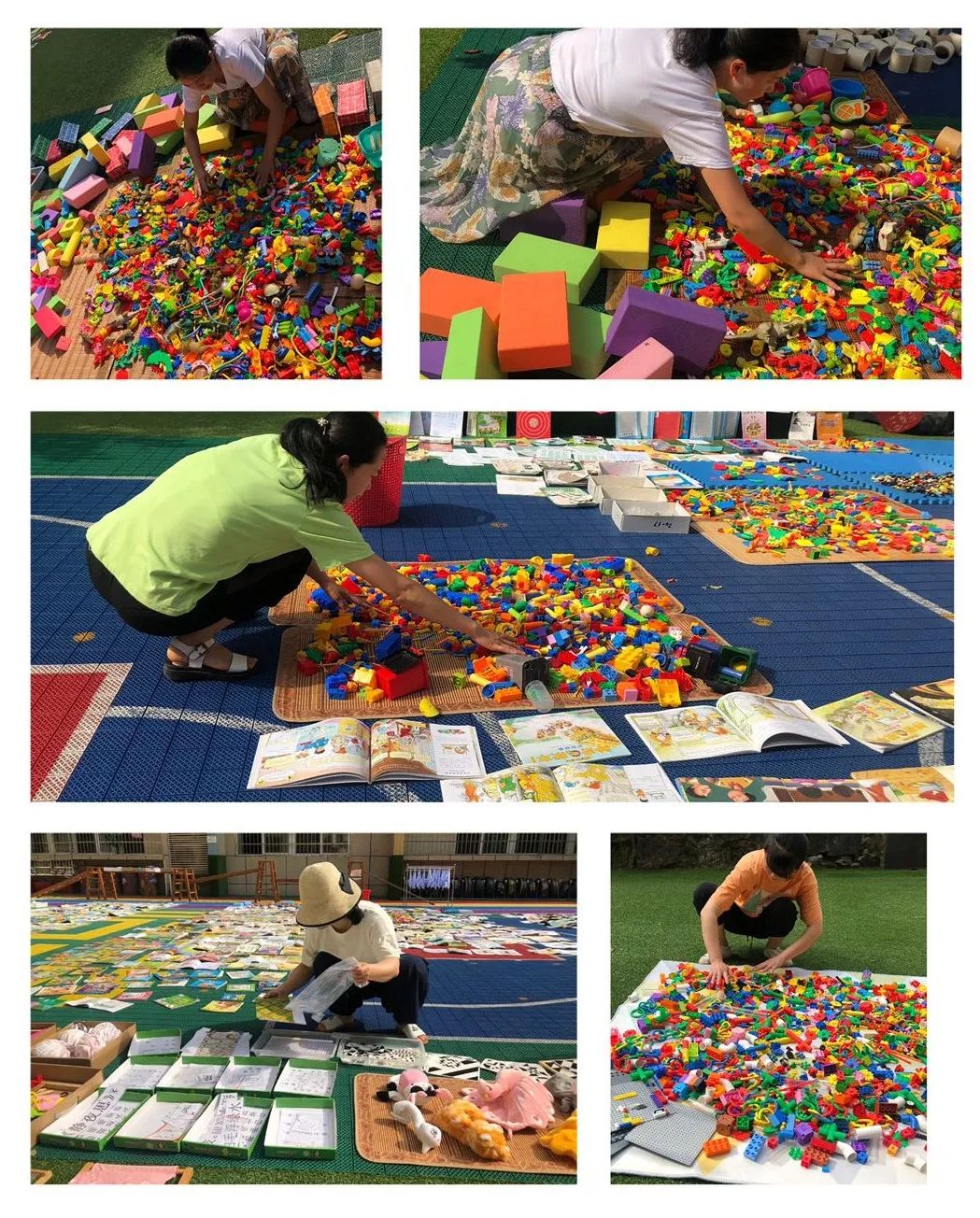 预防冠状病毒和鼻病毒,她们这样做,借着灼热的大太阳,给玩具书籍消消毒。
