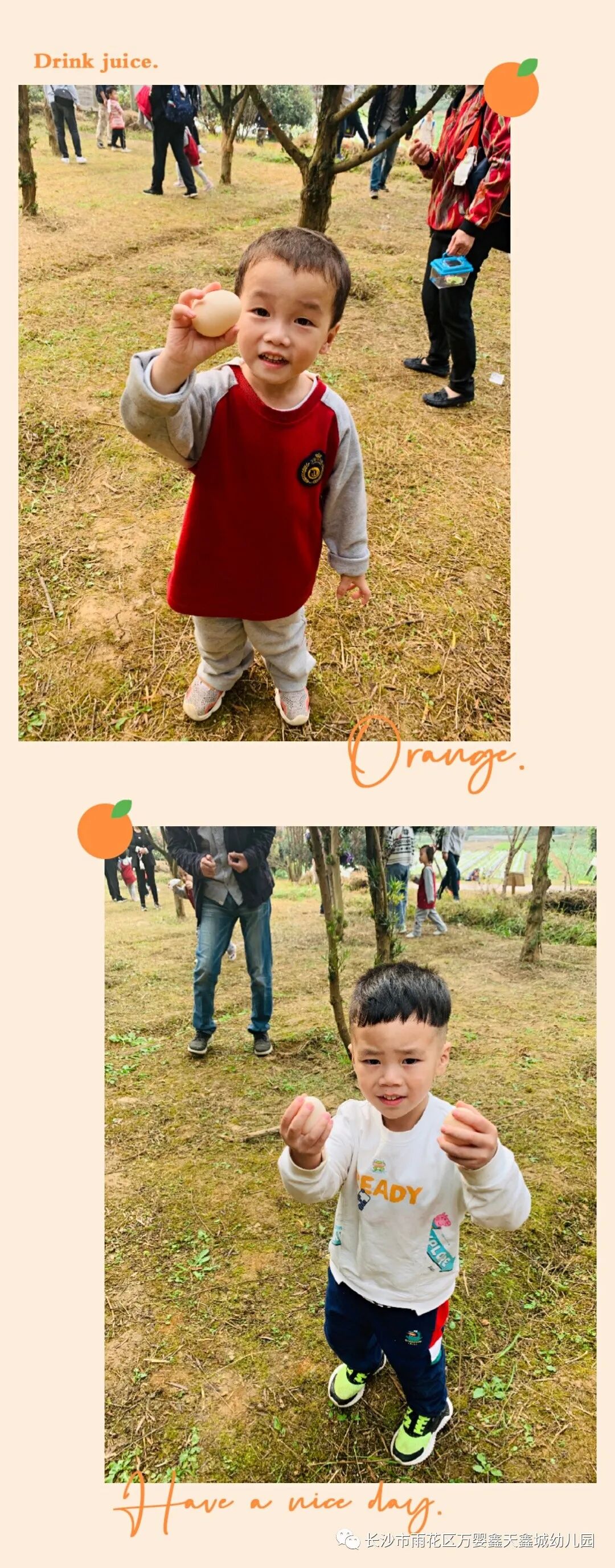 秋 游 啦! 让我们一起来探索秋天的秘密吧! 秋天丰富而多彩,在这美丽的季节里,大自然是孩子们最广阔的教室,赋予孩子们取之不尽的源泉。 在新鲜的空气及阳光之下,能增强体质,提高孩子的独立和对外界的适应能力,还能促进家庭之间的感情。 出 发 啦 “走、走、走走走,我们一同去郊游……”沐浴着清新的空气,孩子们像一只只欢乐的小鸟,兴高采烈地上车啦------ 亲子游戏开始啦! 到达目的地之后,我们的亲子游戏开始啦! 制作香包 我们要开始制作香包啦! 一起寻找蛋宝宝 跟上我们的小脚步,一起来寻找蛋宝宝吧! “妈妈,妈妈,我发现蛋宝宝了······” “快看快看! 哇塞! 野炊开始啦! 开始准备午餐咯~ 爱的抱抱 通过"爱的抱抱“小游戏来传递温暖,拉近小朋友与老师之间与同伴之间的距离,从而增进交流,促进情感。 一起来蜜蜂课堂,探索蜜蜂的秘密 蜜蜂见花团团转,花见蜜蜂朵朵开。 小蜜蜂可是一位辛勤的小园丁呀! 魔法课堂——不吃垃圾食品 “哇!白开水变成橙汁了,真神奇! “闻一闻还真的有橙子的味道呢! “哇! 我们看到了白开水需要经过大量的甜蜜素、色素,一下子就变成了商店里的橙汁。 种子的秘密 种子世界真神奇,一粒小小的种子可以成长为茂密大树,美丽小花,力量真是无穷大。 探索完种子的秘密之后让我们一起来种种子吧! 快来闻一闻小草的味道 小草给人生机的动力,它充满了活力,充满了梦想,充满了希望。 最后是我们的大合影啦! C班 H班 A班 M班 K班 愉快的秋游结束了,此次的秋日活动让孩子们与大自然更亲近了,使得孩子们能够近距离的去感受、接触到大自然的美好,同时也锻炼了孩子们的身体,培养了孩子们吃苦耐劳、坚忍不拔的意志品质。